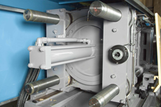 射出雙油壓缸設計,射出壓力大,結構簡單,堅固耐用。